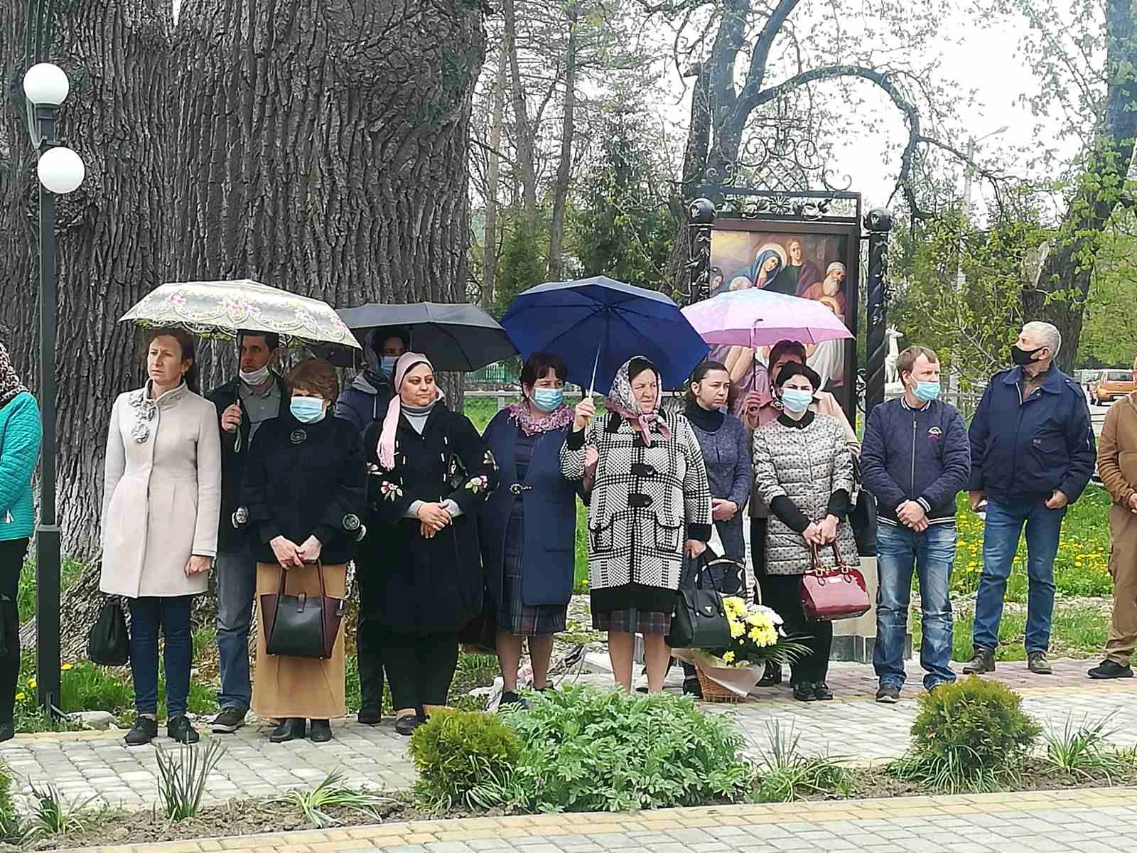 Отець-декан Володимир Вишнівський (с. Маркова), отець Віталій (смт. Солотвин), отець Василь Козоріз (с. Монастирчани), отець Дмитро Дякун (с. Кривець), отець Василь Гоголь (с. Старуня) відправили поминальну панахиду за загиблими у часи Другої світової війни та війни на сході України. Зі словами вдячності виступили селищний голова Манолій Піцуряк та отець – декан Володимир Вишнівський.